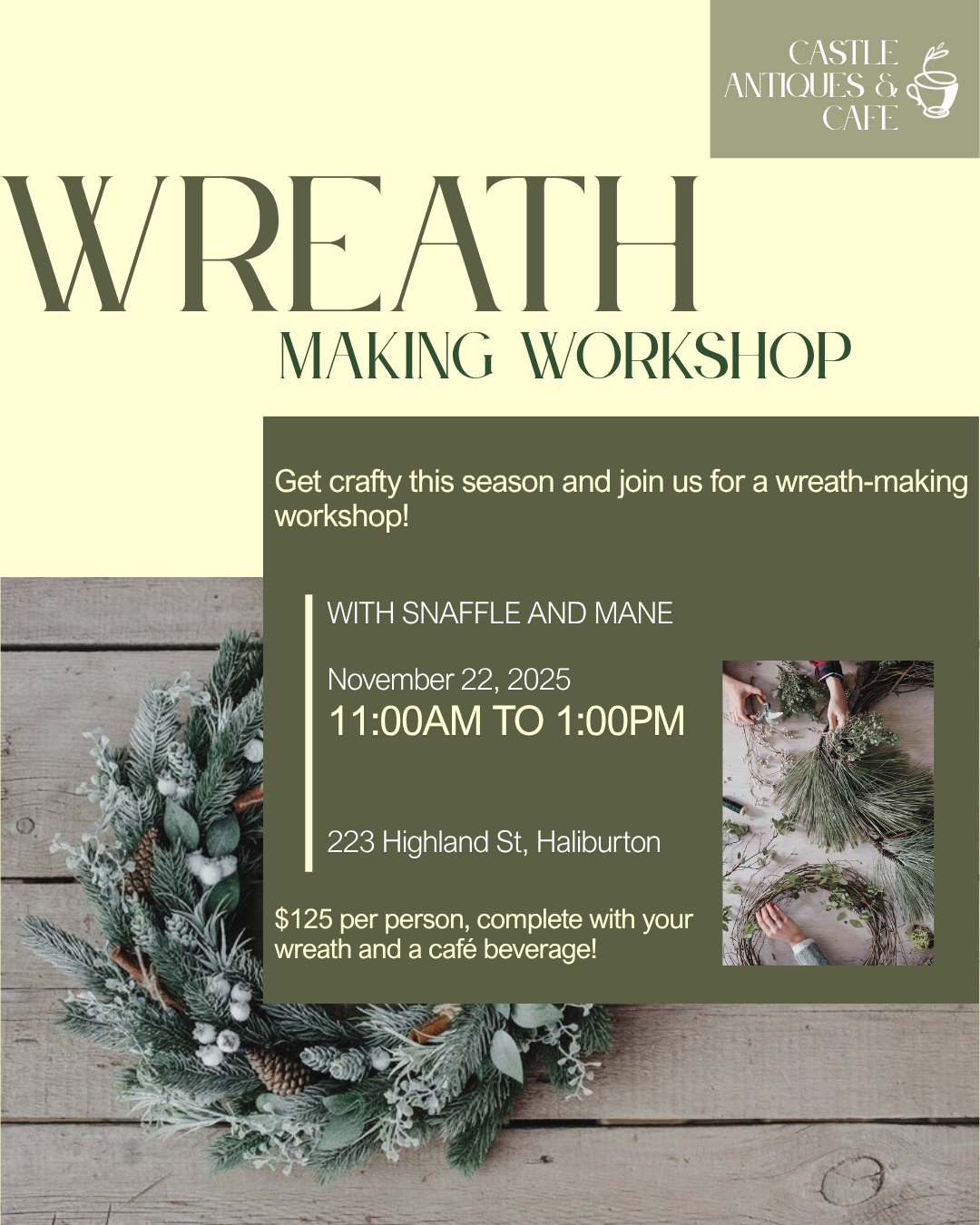 Wreath-making workshop on November 11th. Register by visiting or calling the café!