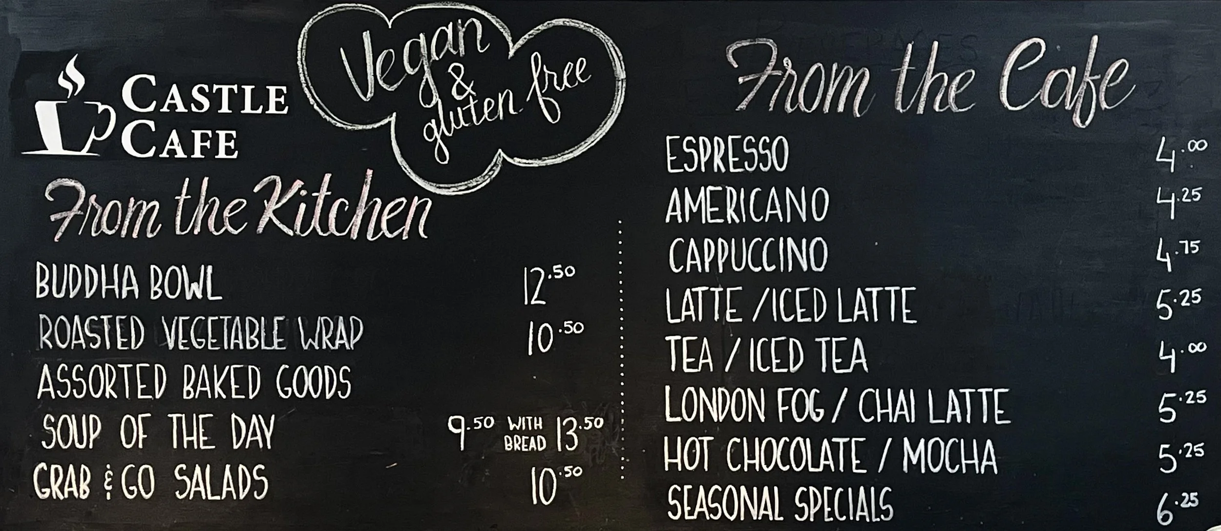 Castle Cafe is proud to offer fresh, home-made vegan and gluten free baked goods and lunch options. Everything we make is from scratch using only quality whole ingredients. We offer an assortment of muffins, cookies, squares, scones, and cakes made fresh daily. We also welcome special orders!